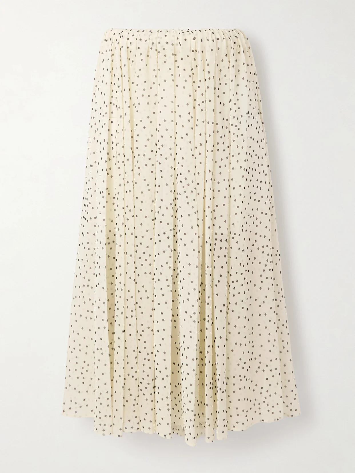 Pleated Polka-dot Silk-blend Chiffon Midi Skirt