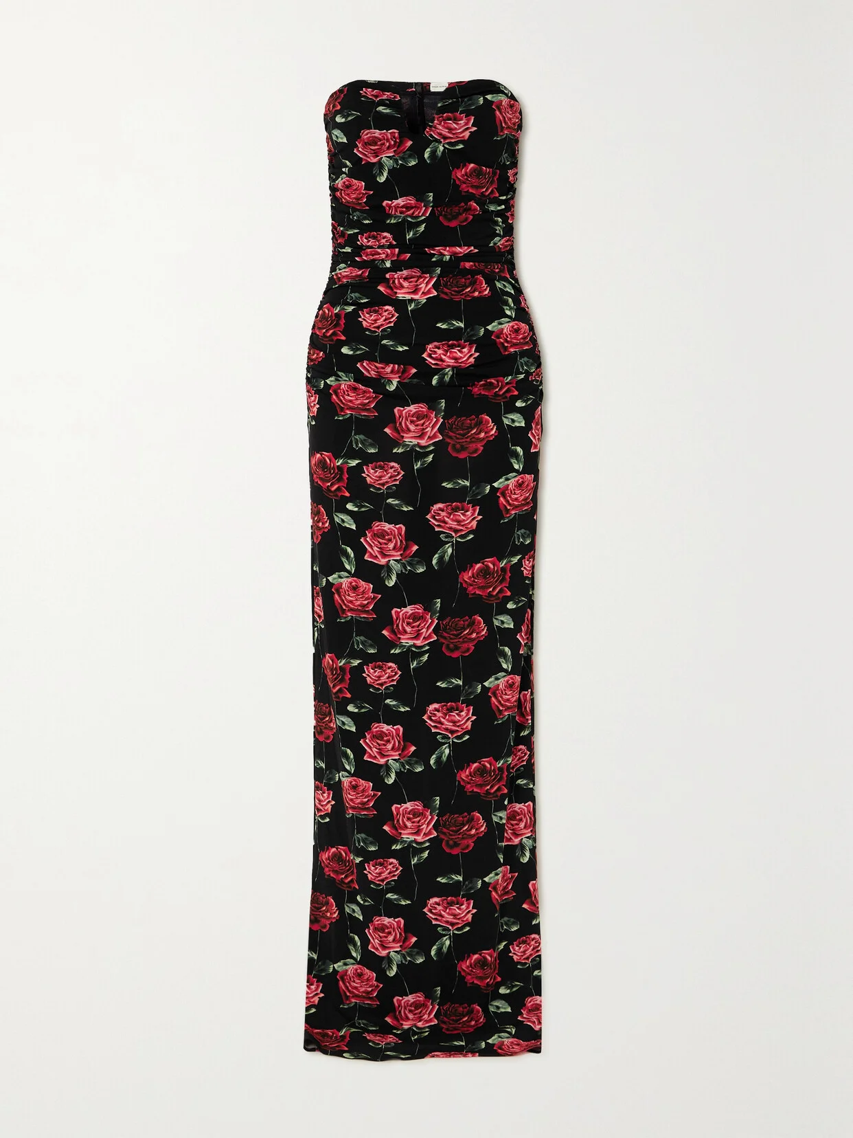 Ruched Floral-print Stretch-jersey Bustier Gown