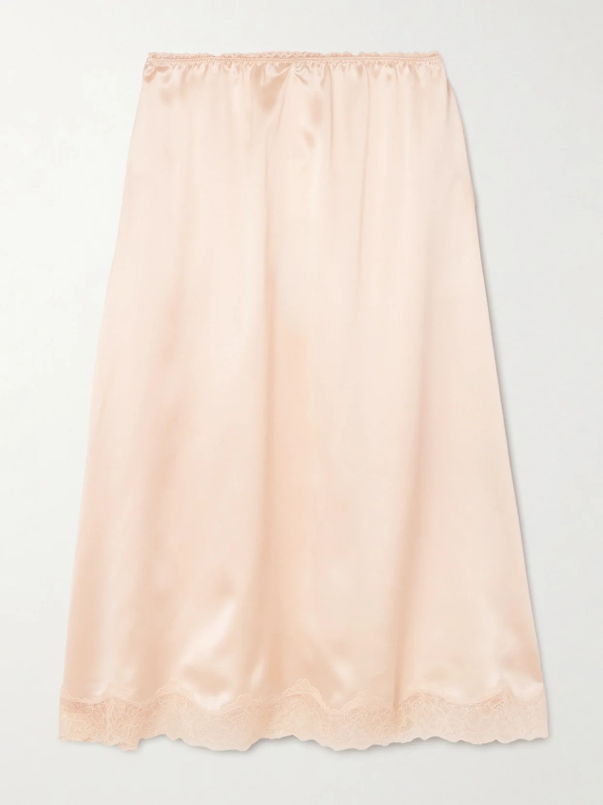 Magda Butrym brings her signature romantic sensibility to this skirt. Cut from silk-satin in a flared silhouette, it has an elasticated waistband and is finished with delicate scalloped-lace hem. Wear yours with a simple knit or tailored blouse.