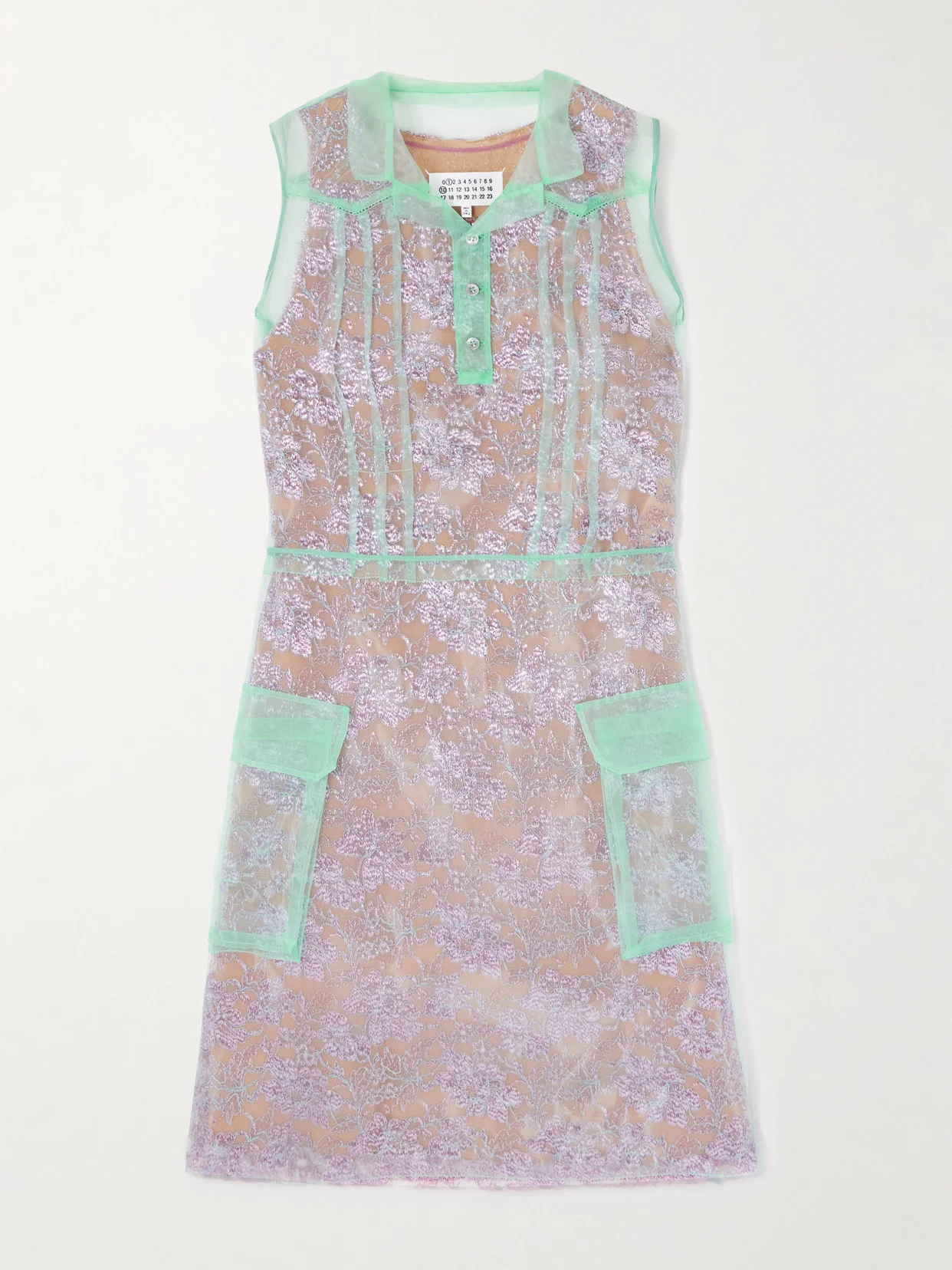 Maison Margiela's dress is inspired by styles worn for afternoon tea in the 1920s and '40s. It's made from delicate lace layered with sheer organza for structure and texture. The buttoned placket and flap pockets lend a utilitarian edge.