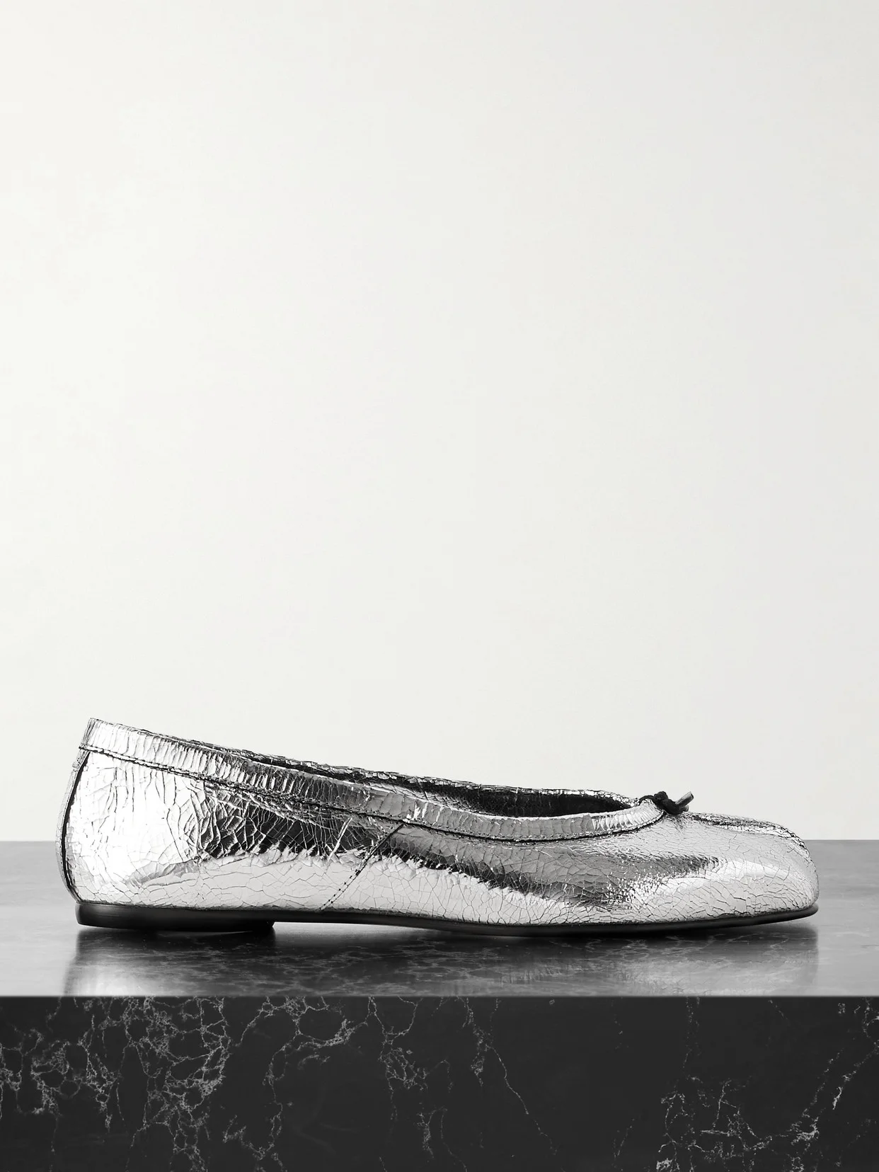Maison Margiela's signature split-toe shoes feel really modern, even though the 'Tabi' socks that inspire them actually date back to 15th-century Japan. These ballet flats have been made in Italy from metallic cracked-leather and are detailed with dainty knotted bows.