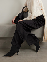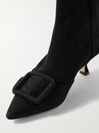There's no mistaking the distinctive buckle crowning Manolo Blahnik's 'Baylow' ankle boots. They've been crafted in Italy from plush suede, defined by a sharp point-toe profile and set on low fluted stiletto heels for an elegant amount of lift.