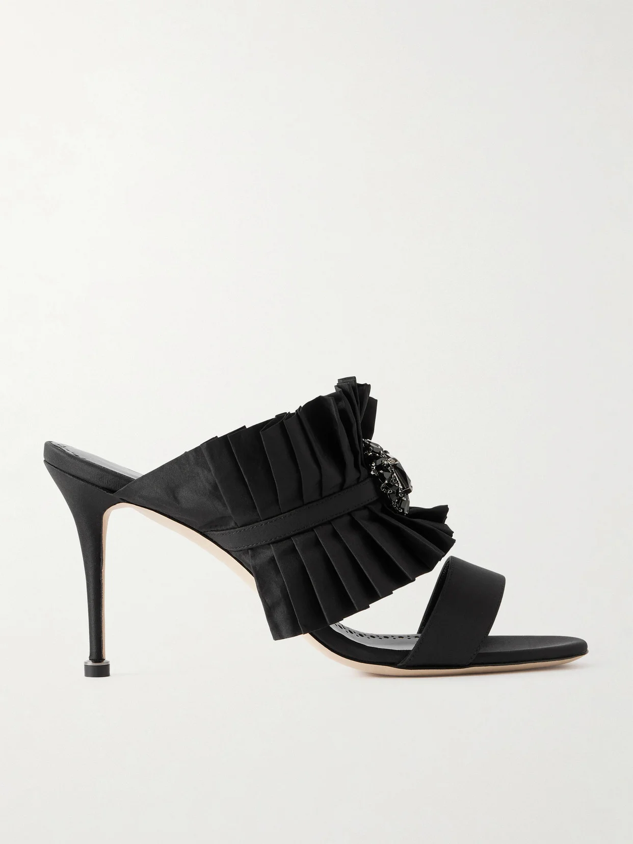 Manolo Blahnik's 'Danteuil' mules are inspired by the acclaimed photographer Irving Penn and model Gina Ginetta - they're an ode to the decorative bows and pleats captured in portraiture. Made from silk, they're meticulously pintucked and centered with crystal-adorned buckles.