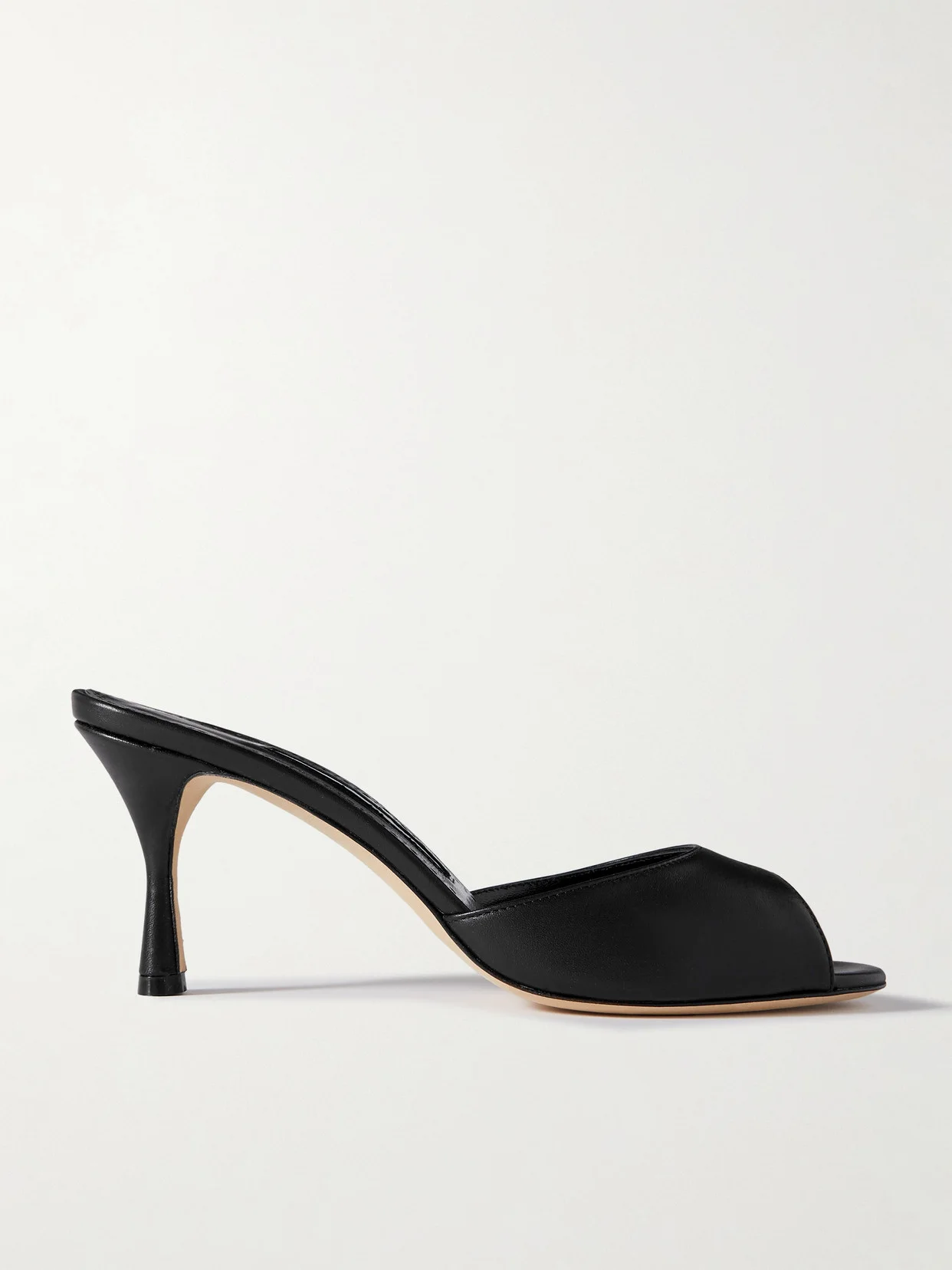 Manolo Blahnik told us that to this day he still sketches every single shoe himself - it's a testament to the passion he pours into his craft. Made in Italy from exceptionally soft black leather, these 'Jada' mules have almond-shaped open toes and 70mm heels. Slip them on with everything from midi skirts to tailored pants.