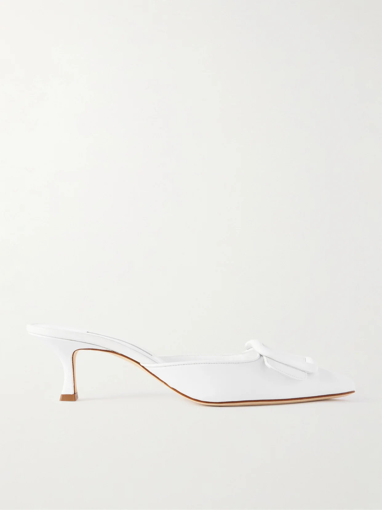 Manolo Blahnik debuted his iconic 'Maysale' mules in Isaac Mizrahi's Spring '91 runway collection and they've been a fan favorite ever since. Topped with the signature buckle, this pair has been crafted in Italy from leather and set on fluted kitten heels. They're lined and soled with smooth leather for extra comfort.