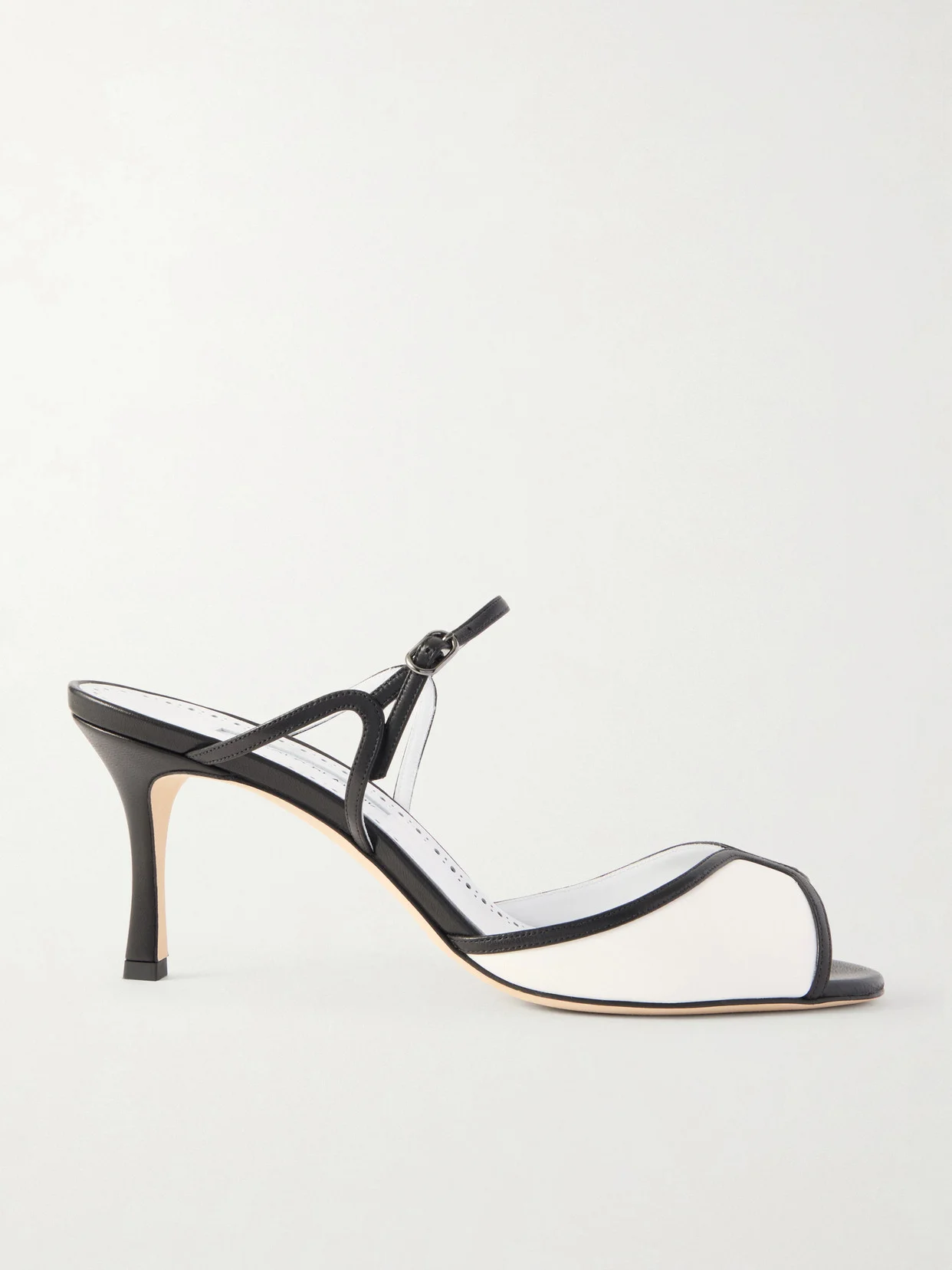 Manolo Blahnik's 'Versari' mules strike the balance of contemporary yet classic. Made in Italy from supple leather, they're detailed with contrast piping and have delicate buckle-fastening straps that elegantly frame each foot. The pair is set on a 70mm stiletto heel, lending a refined finish to any look. Small to size. See Size & Fit notes.