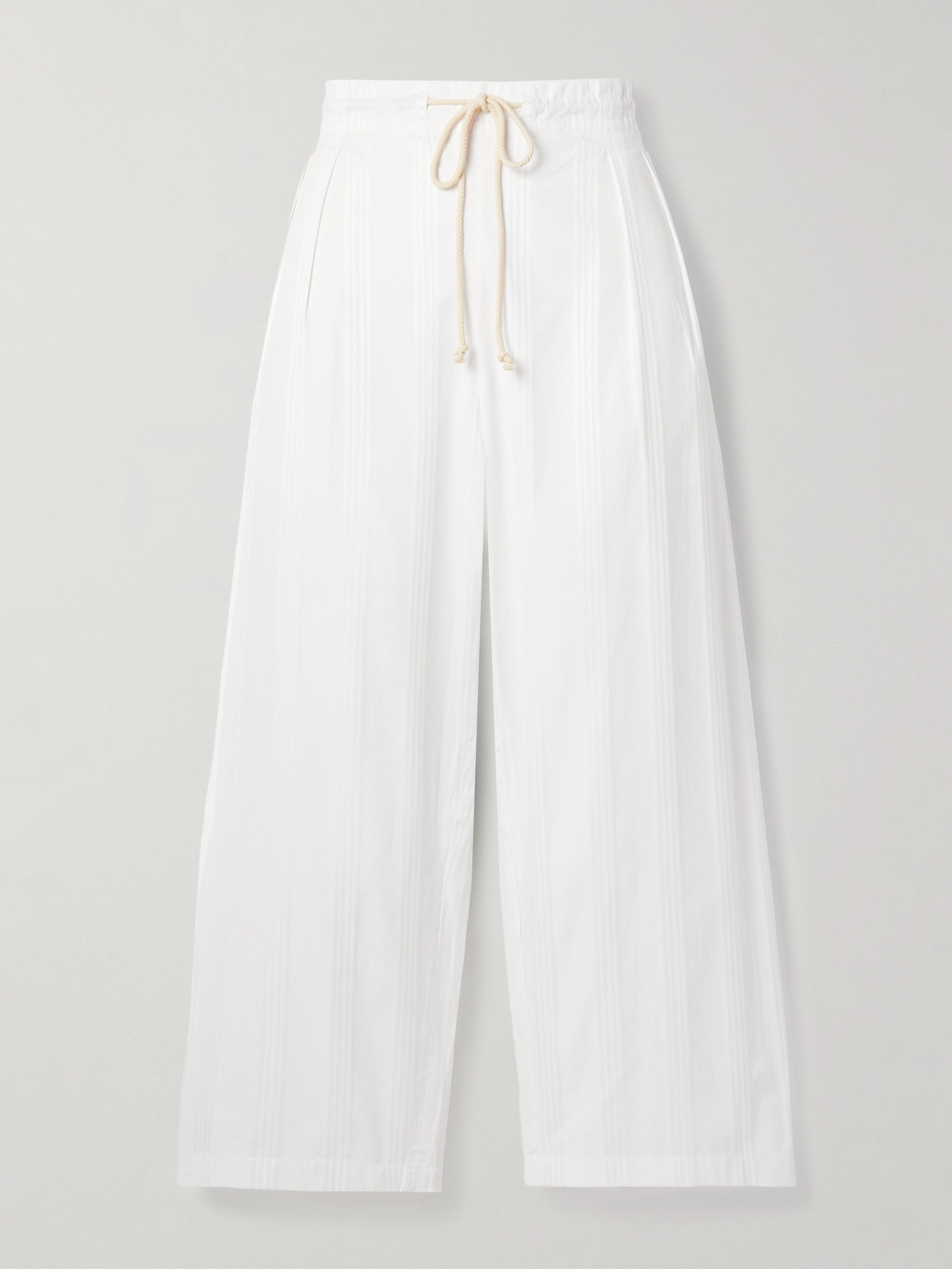 Pleated Striped Organic Cotton-jacquard Wide-leg Pants