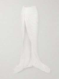 A fusion of Eastern and Western influences results in Marmar Halim's beautiful eveningwear. This maxi skirt is cut from plisse silk-satin that's artfully gathered in undulating folds and cascades to a trailing floor length. The high side slit makes it comfortable to move in.