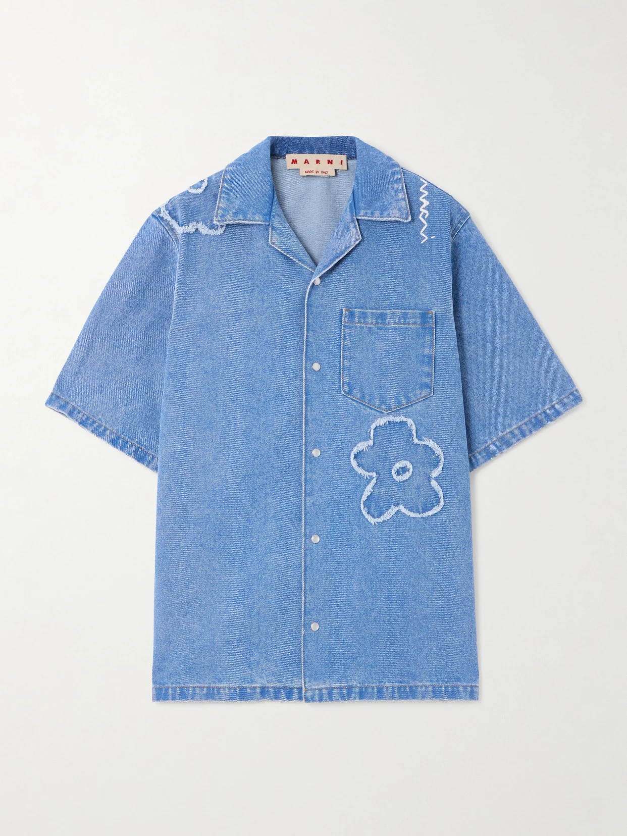 Marni's shirt features frayed flowers throughout - a key motif seen through the latest collection. It's cut from denim and has a camp collar and the brand's logo embroidered on the shoulder. Wear yours as a set with the matching jeans.