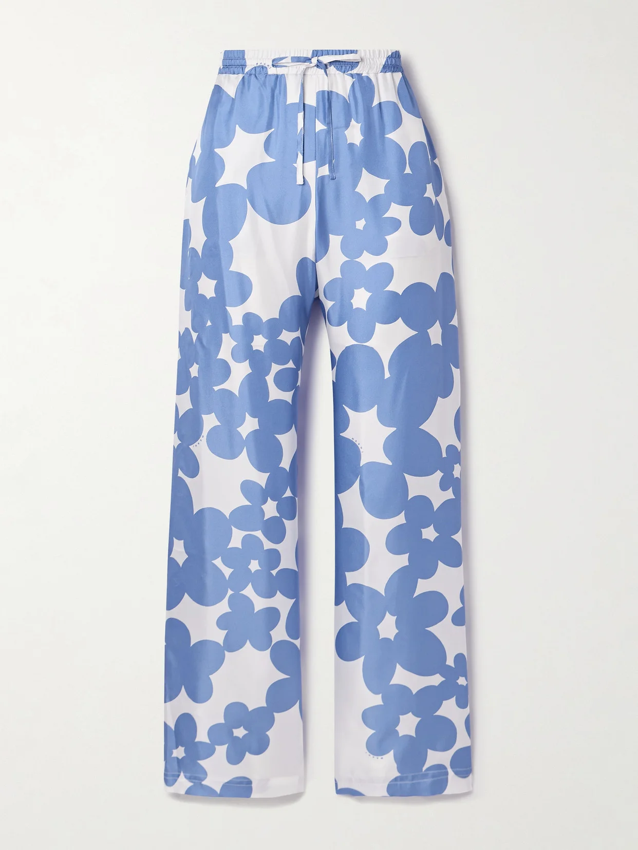 Marni puts an elevated spin on pajama dressing with these comfortable, straight-leg pants. They have been made in Italy from silk-satin twill printed with blue florals and have an elasticated, drawstring waistband. Wear yours with the matching top.