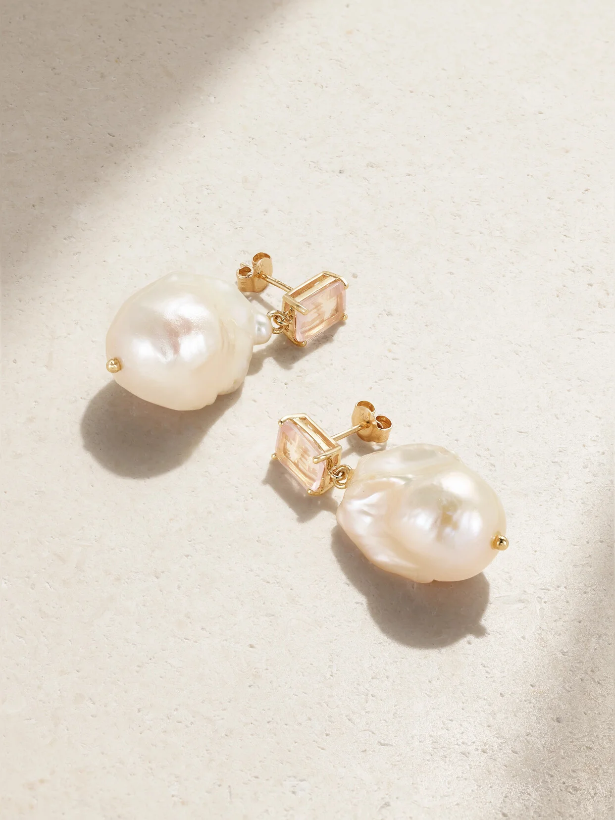 14-karat gold, pearl and rose quartz earrings Gold