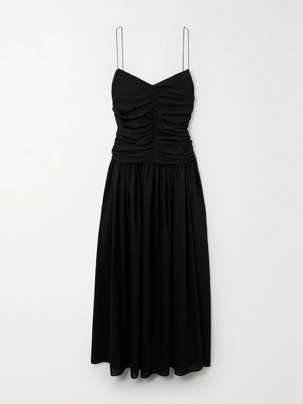 + Net Sustain Gathered Pleated Organic Cotton And Silk-blend Midi Dress