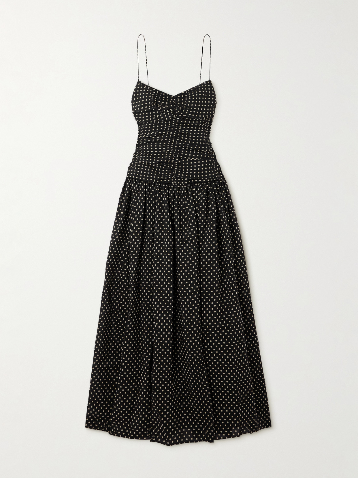 Gathered Polka-dot Organic Cotton And Silk-blend Midi Dress