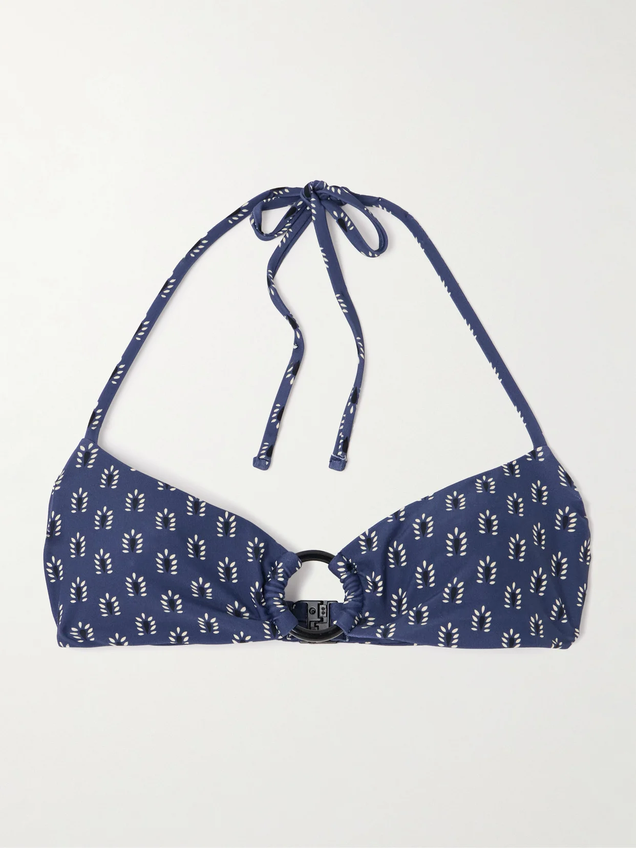 Ring Embellished Floral-print Recycled Halterneck Bikini Top
