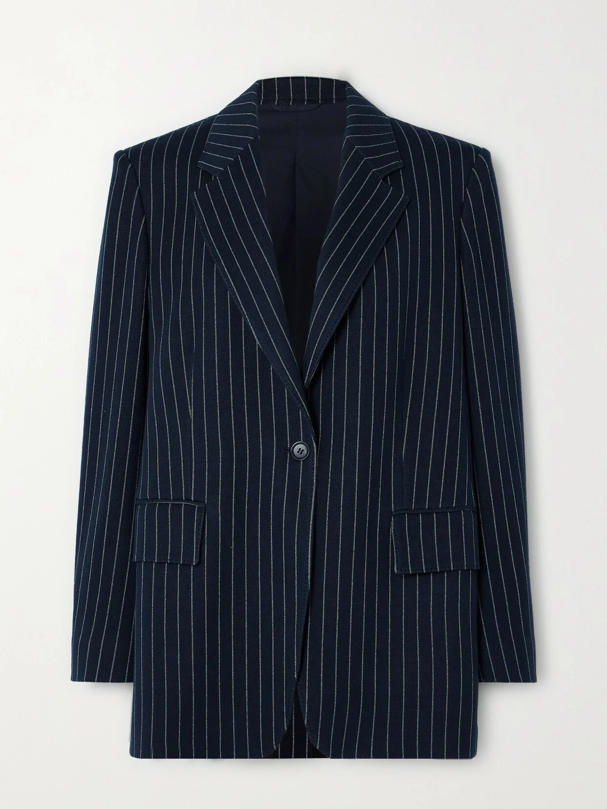 Max Mara's pinstriped 'Aceri' blazer is tailored from a blend of cotton, cashmere and silk. It has a slightly longline length and padded shoulders. Wear yours with tonal pants and kitten heels.