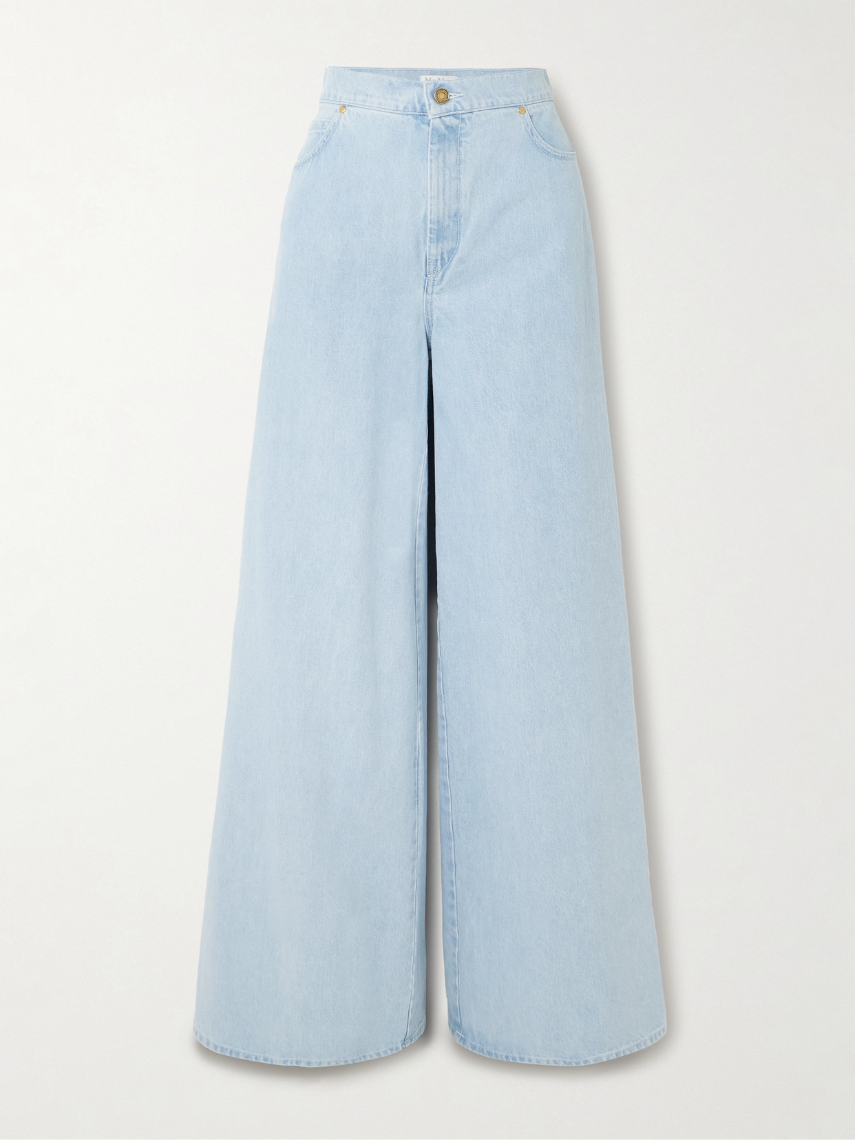 Max Mara's 'Affari' jeans have a column-like silhouette that has an elongating effect. They're cut from pure cotton-denim in a high-rise, wide-leg shape and detailed with chevron-stitched pockets and a logo patch on the back.