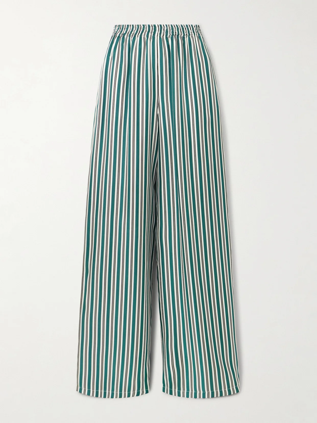 Max Mara's 'Ladino' pants draw inspiration from classic men's pajamas. Made from glossy silk-twill patterned with stripes, they have wide legs traced with piping and a comfortable elastic waist. Wear them while lounging at home or style yours with heels and the matching shirt for a night out.
