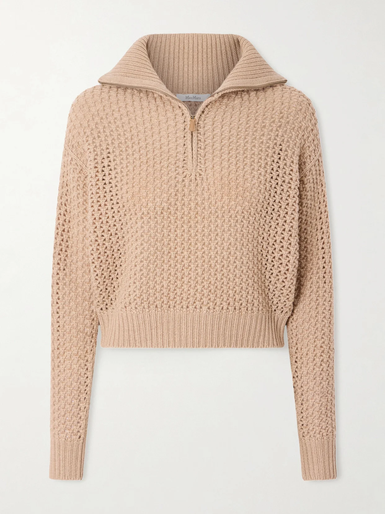 Max Mara's sweater is a refined staple - metallic threads to give it a subtle shimmer. It's knitted from wool-blend with a touch of cashmere for extra warmth and has a ribbed half-zip turtleneck.