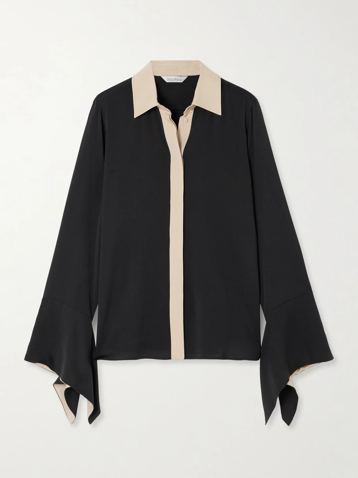 Max Mara's 'Pio' shirt comes in a two-tone colorway that's classic and timeless. Crafted from pure silk, it has flouncy bell sleeves and a sharp collar. The covered placket creates a sleek, refined look.