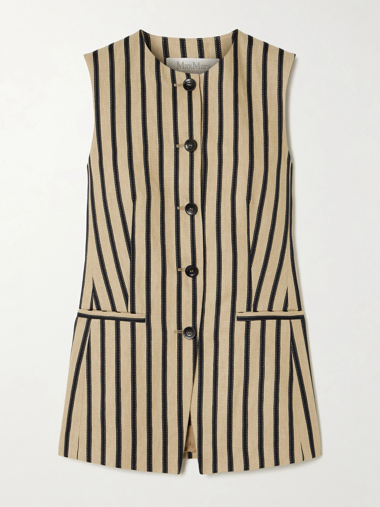 Max Mara's vest looks great styled with the matching pants or with a contrasting pair. Tailored from a lightweight linen-blend, it's patterned with striking vertical stripes - note how they curve inward at the waist, gently defining the shape.