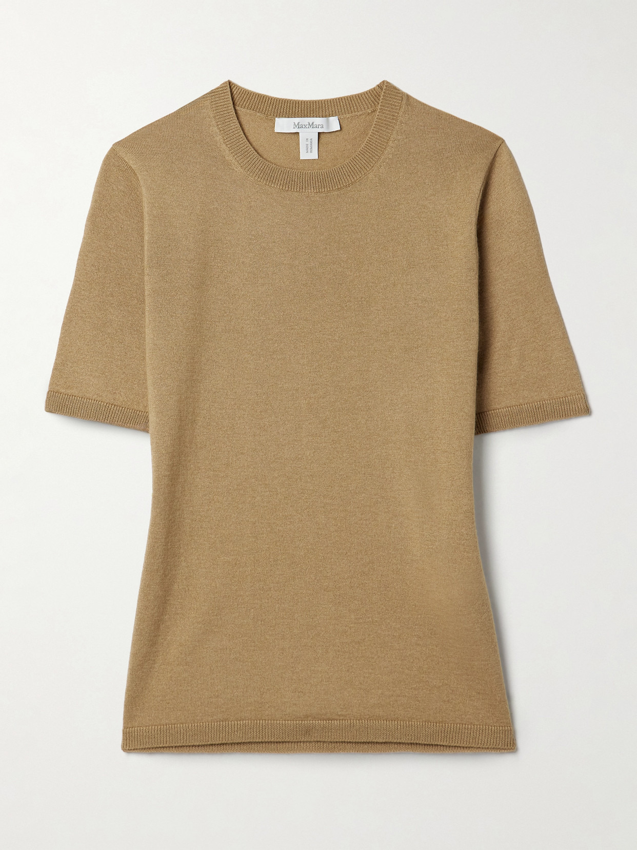Max Mara's 'Warren' sweater is versatile and smart. It's knitted from a soft silk and cashmere-blend in a neutral camel tone and finished with ribbed trims.