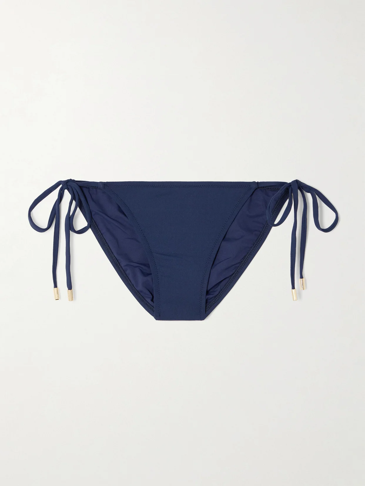Melissa Odabash's 'Maldives' bikini briefs come in a classic navy that'll complement the crystal waters surrounding the tropical island. They're made from stretch fabric in a classic mid-rise shape and have adjustable side ties tipped with gold-tone hardware.