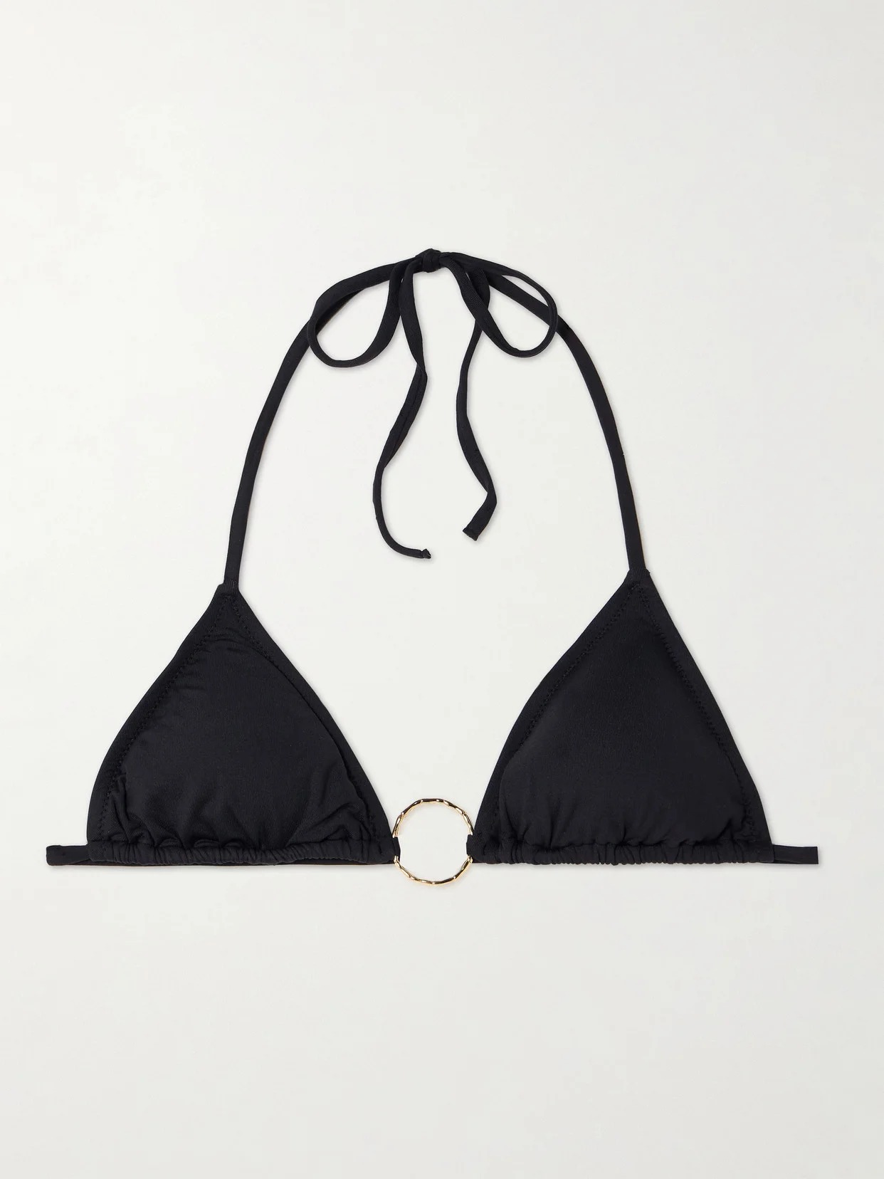 Melissa Odabash's understated ‘Miami' bikini top is centered with a hammered gold-tone ring that connects the triangle cups. It's made from stretch fabric and has adjustable ties and removable padding. Complete the set with the matching briefs.