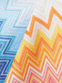 Missoni Mare flexes its creativity with this bikini, which looks like two different styles fused together. Made from metallic crochet-knit featuring signature colorful chevron stripes, it has a gathered halterneck top with adjustable ties and high-rise briefs that offer medium coverage.