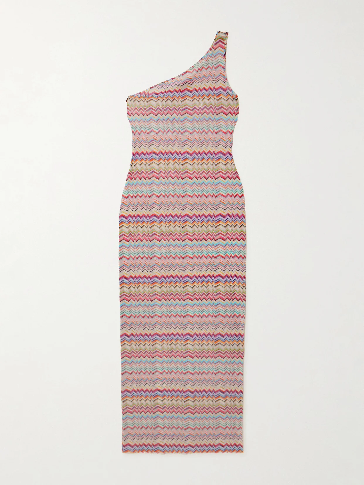 Missoni's vibrant patterns are unmistakable. This coverup is made from lightweight stretch-mesh that's emblazoned with rainbow chevron stripes and has a one-shoulder neckline. Slip yours on over swimwear while lounging at the pool or beach.