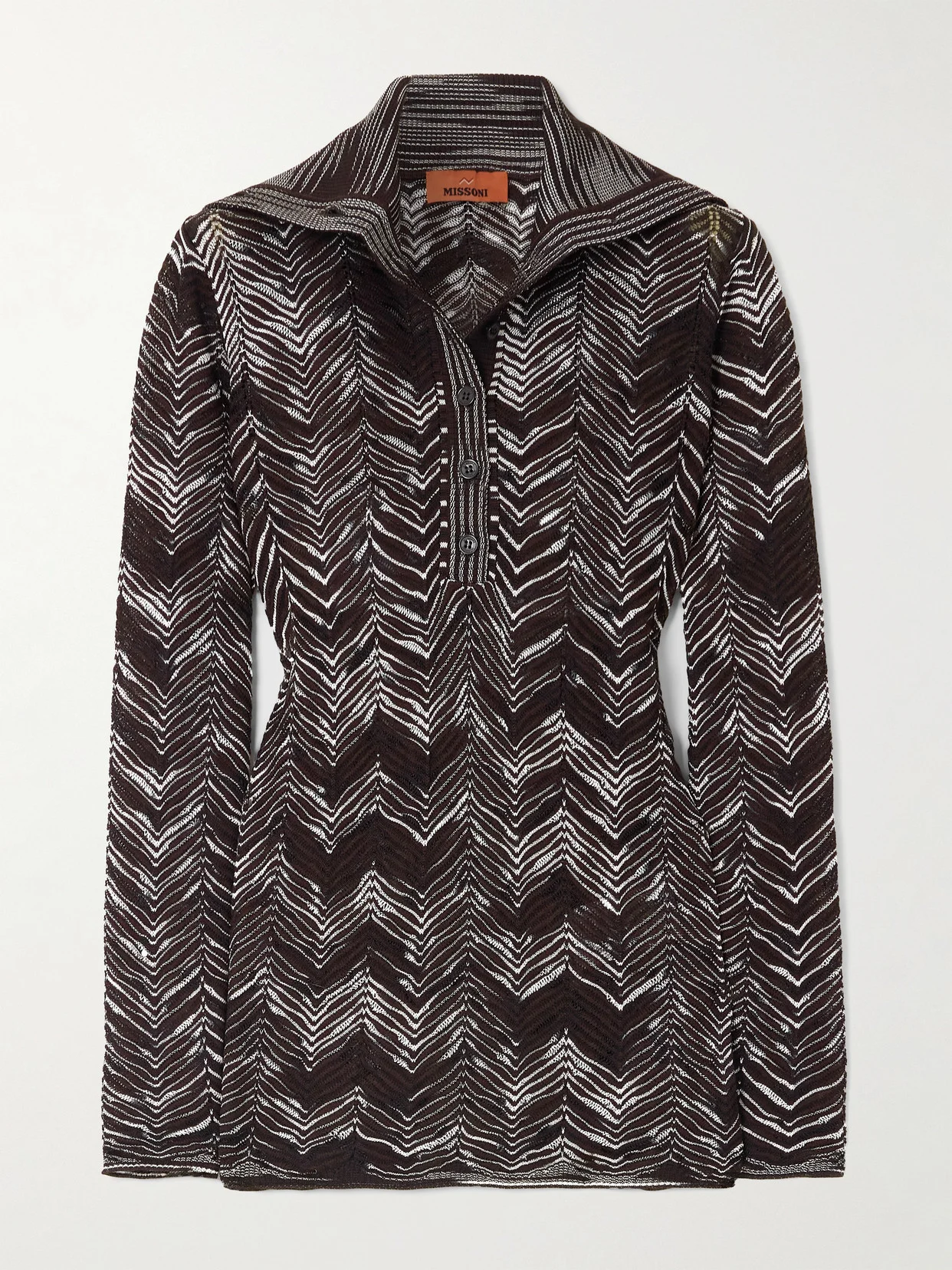Missoni's sweater was styled with multiple looks on the brand's Fall '25 runway. It's been made in Italy from wool-blend and crochet-knitted with the signature chevron stripes. Leave a few buttons undone to show off a stack of dainty necklaces.