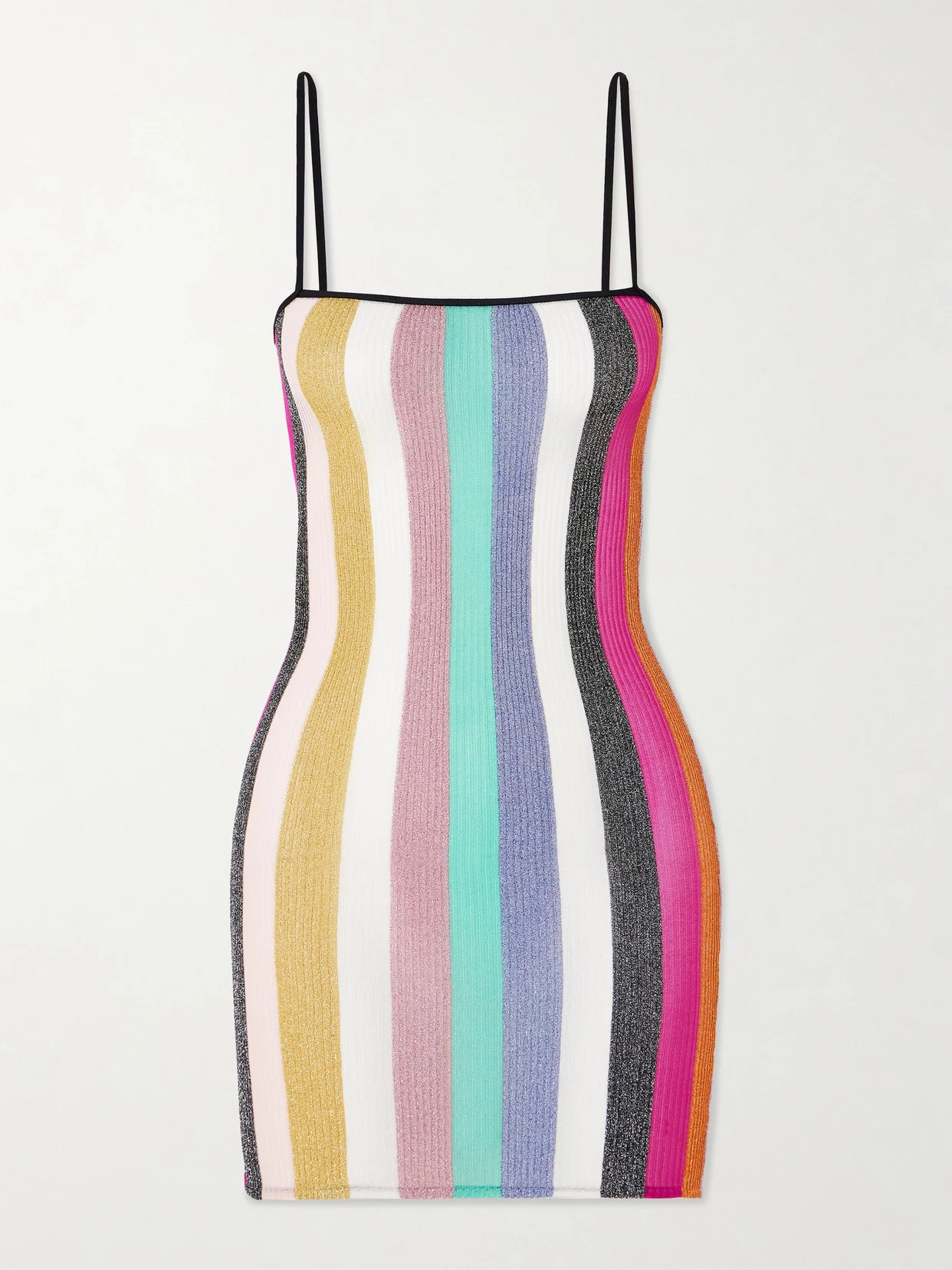 Missoni's dress is woven with vertical stripes that elongate your frame. Flecked with metallic threads, it's crochet-knitted to hug your figure and has a square neckline framed by pin-thin straps. Match your accessories to the jewel-tone palette.