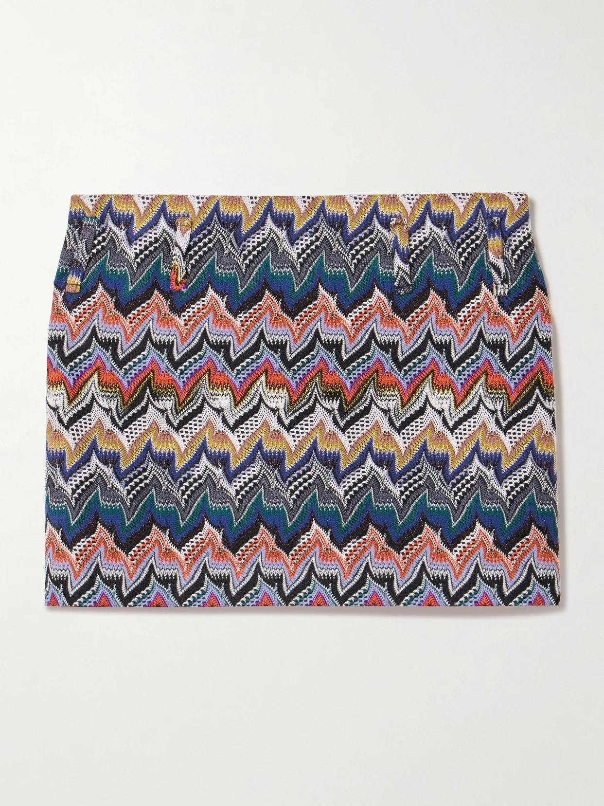 Missoni's mini skirt is made using the house's signature Raschel weaving techniques - fans of the brand will instantly recognize the distinctive crochet-knit. It's blended with a generous amount of wool and is flecked with sparkling metallic threads that highlight the colorful zigzags.