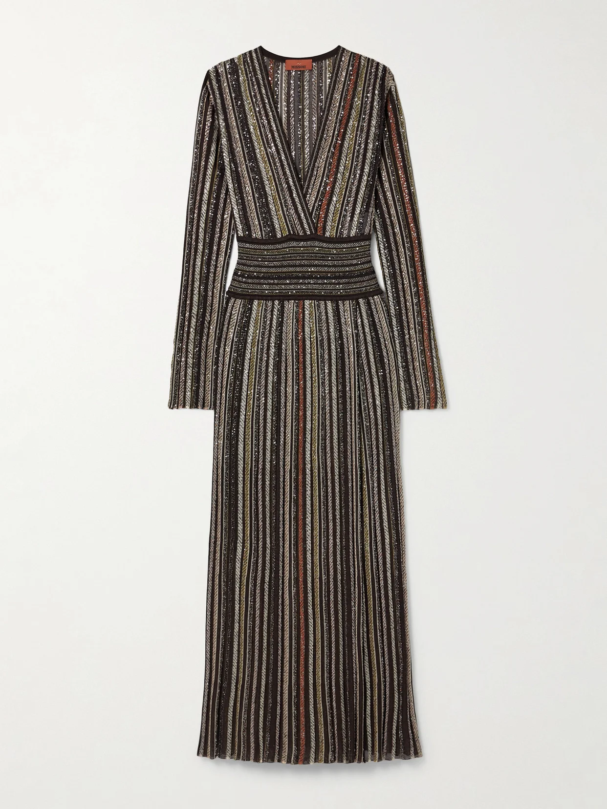 Flecked with metallic threads and sequins, Missoni's dress shines effortlessly. It's made from striped jersey and has a wide panel at the waist and plunging neckline.