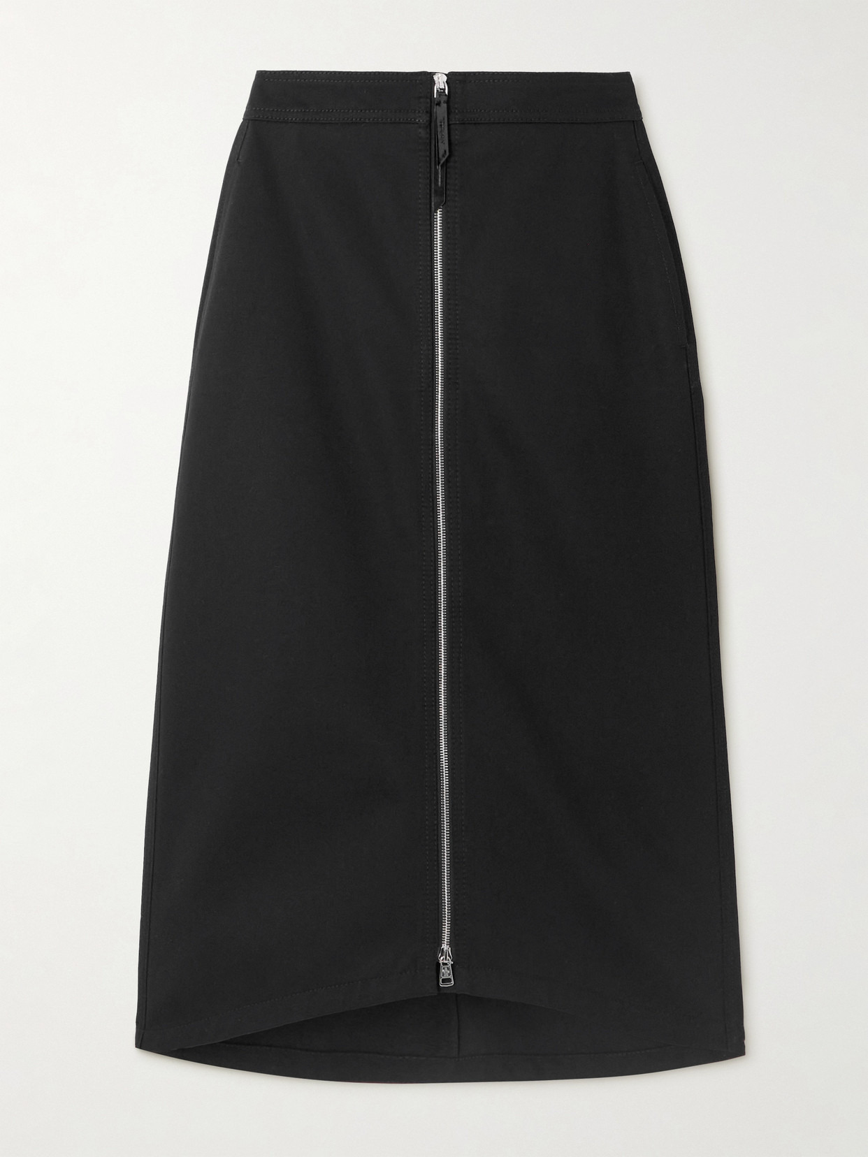 "Functional; yet elegant, and realized in textures of graphic all-black" defines Moncler Genius' capsule with the legend himself, Edward Enninful. Tailored from structured cotton-twill, this midi skirt is fitted with a zip from the high-rise waist to the arced hem.