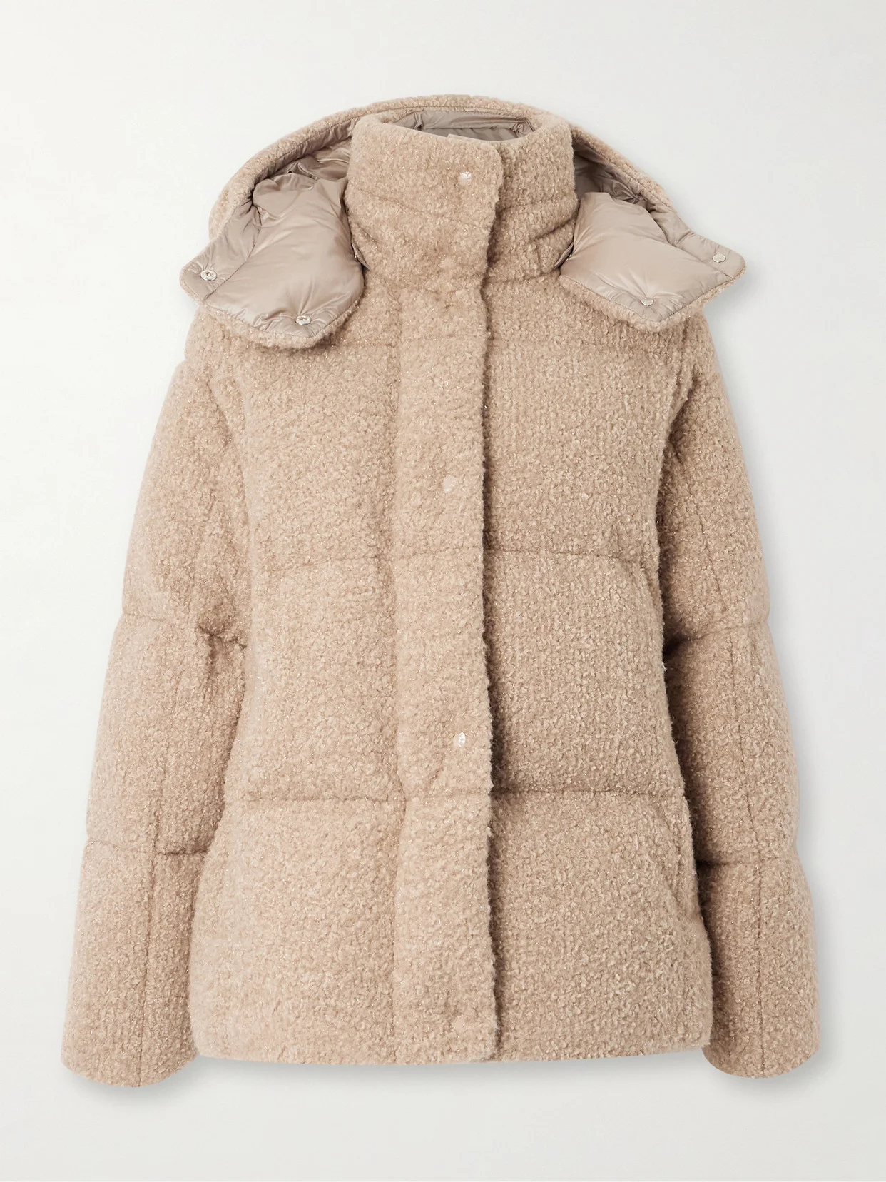 Appliquéd Quilted Metallic Bouclé Hooded Down Jacket