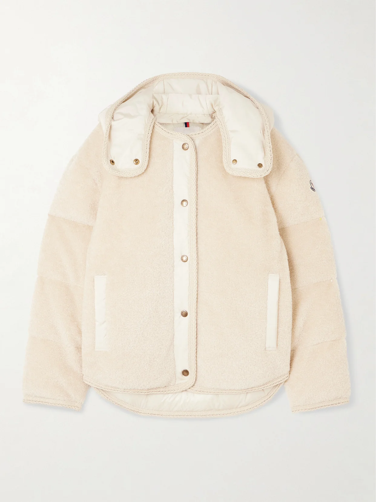 Moncler began making outerwear to protect workers from harsh climates in 1952. Padded with insulating down, this 'Ciboulette' jacket is made from plush fabric with shell and crochet trims.
