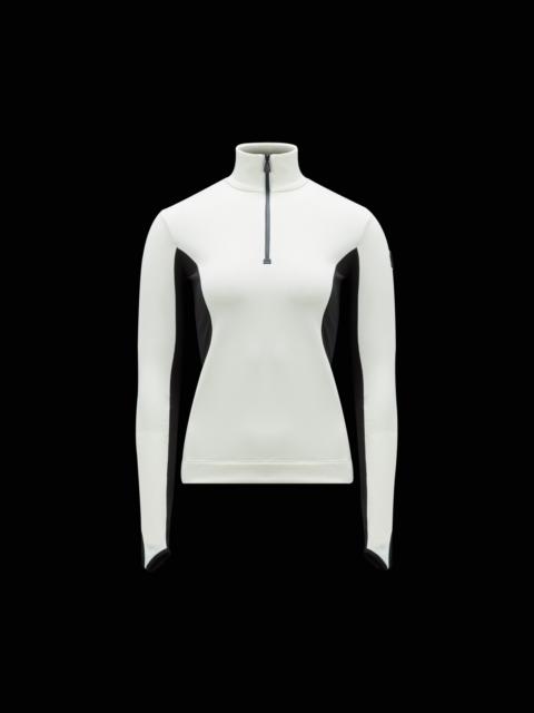 First-hand experience of the slopes equips Moncler Grenoble's team with the technical knowledge required to create effective skiwear. This base layer is cut from color-blocked panels of lightweight stretch-jersey for a slim fit and has thumbholes to keep it perfectly in place. The half-zip collar gives you control over ventilation.