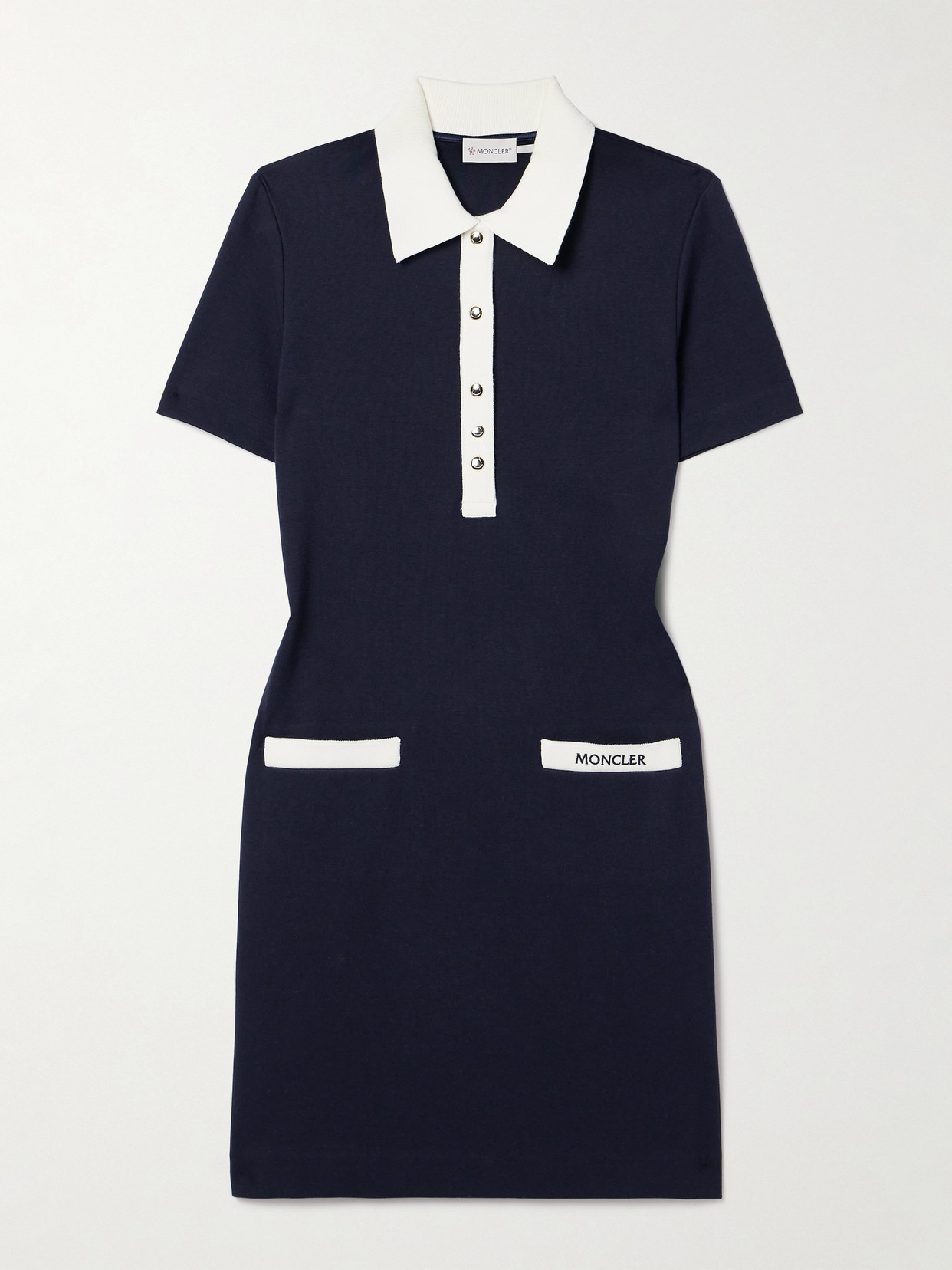Moncler's mini dress serves as proof that technical outerwear isn't the brand's only strong suit. Reminiscent of vintage styles, it's made from navy cotton-blend jersey and has contrasting white trims along the pointed collar, buttoned placket and welt pockets - look closely at the latter and you'll see the brand's logo embroidery neatly into it.