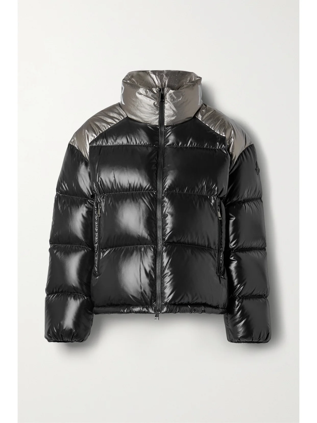 Moncler's 'Cuscute' jacket is made from shiny quilted shell that's filled with down for warmth. The brand's lettering is boldly printed on the silver collar and its logo is appliqued on the sleeve. Use the drawstrings at the hem to adjust the shape.