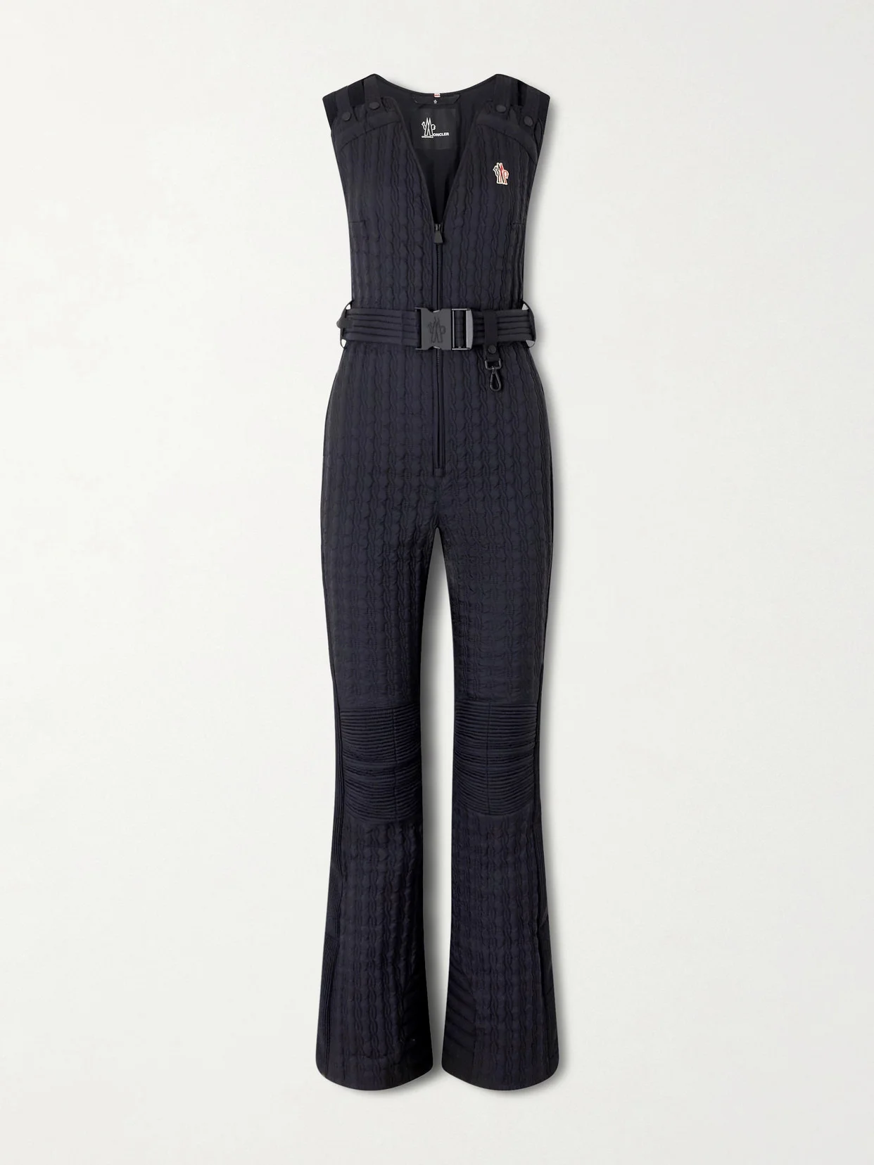 Moncler Grenoble's ski suit is made from water-repellent shell that's quilted and filled with insulating down and has a bib-style bodice that allows for easy on and off. The belt comes with a carabiner to attach your gloves.