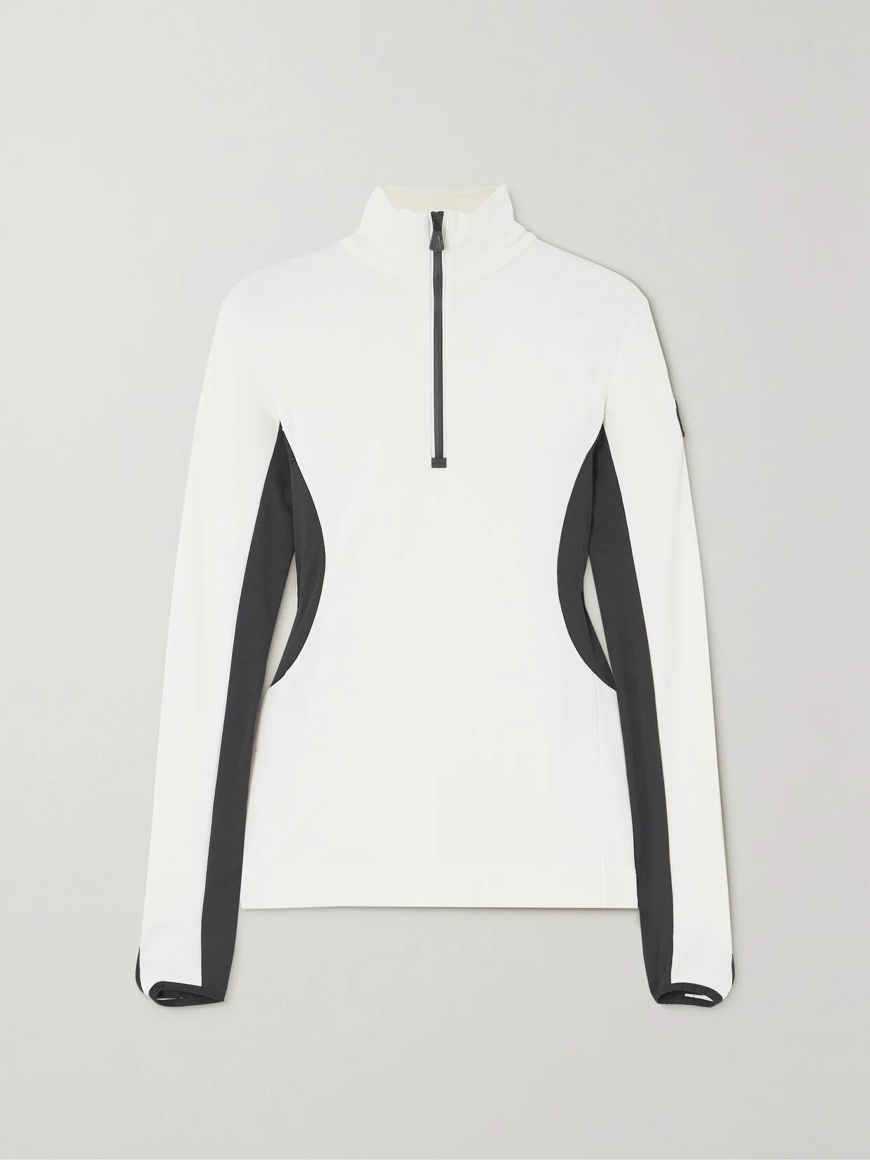 First-hand experience of the slopes equips Moncler Grenoble's team with the technical knowledge required to create effective skiwear. This base layer is cut from color-block panels of lightweight stretch-jersey for a slim fit and has thumb holes to keep it perfectly in place. The half-zip collar gives you control over ventilation.