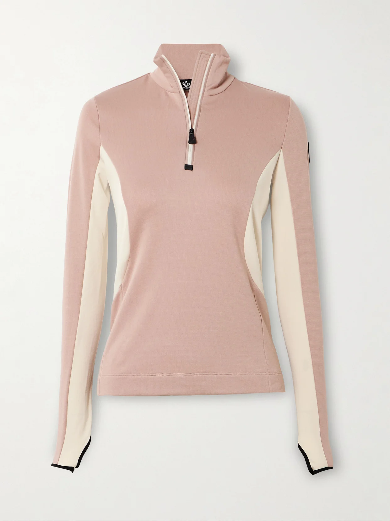 First-hand experience of the slopes equips Moncler Grenoble's team with the technical knowledge required to create effective skiwear. This base layer is cut from color-blocked panels of lightweight stretch-jersey for a close fit and has thumbholes to keep it perfectly in place. The half-zip collar gives you control over ventilation.