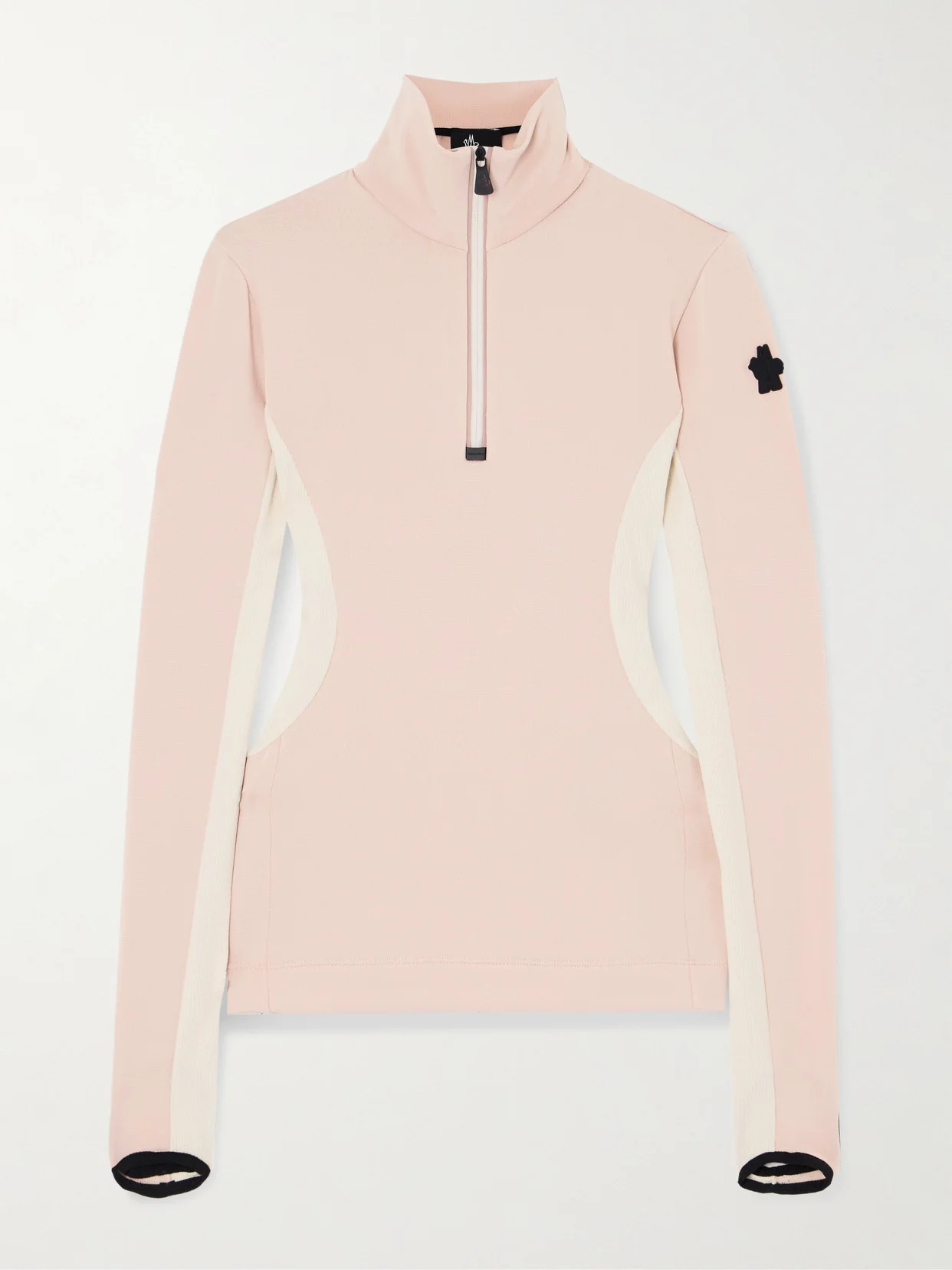 First-hand experience of the slopes equips Moncler Grenoble's team with the technical knowledge required to create effective skiwear. This base layer is cut from color-blocked panels of lightweight stretch-jersey for a close fit and has thumbholes to keep it perfectly in place. The half-zip collar gives you control over ventilation.