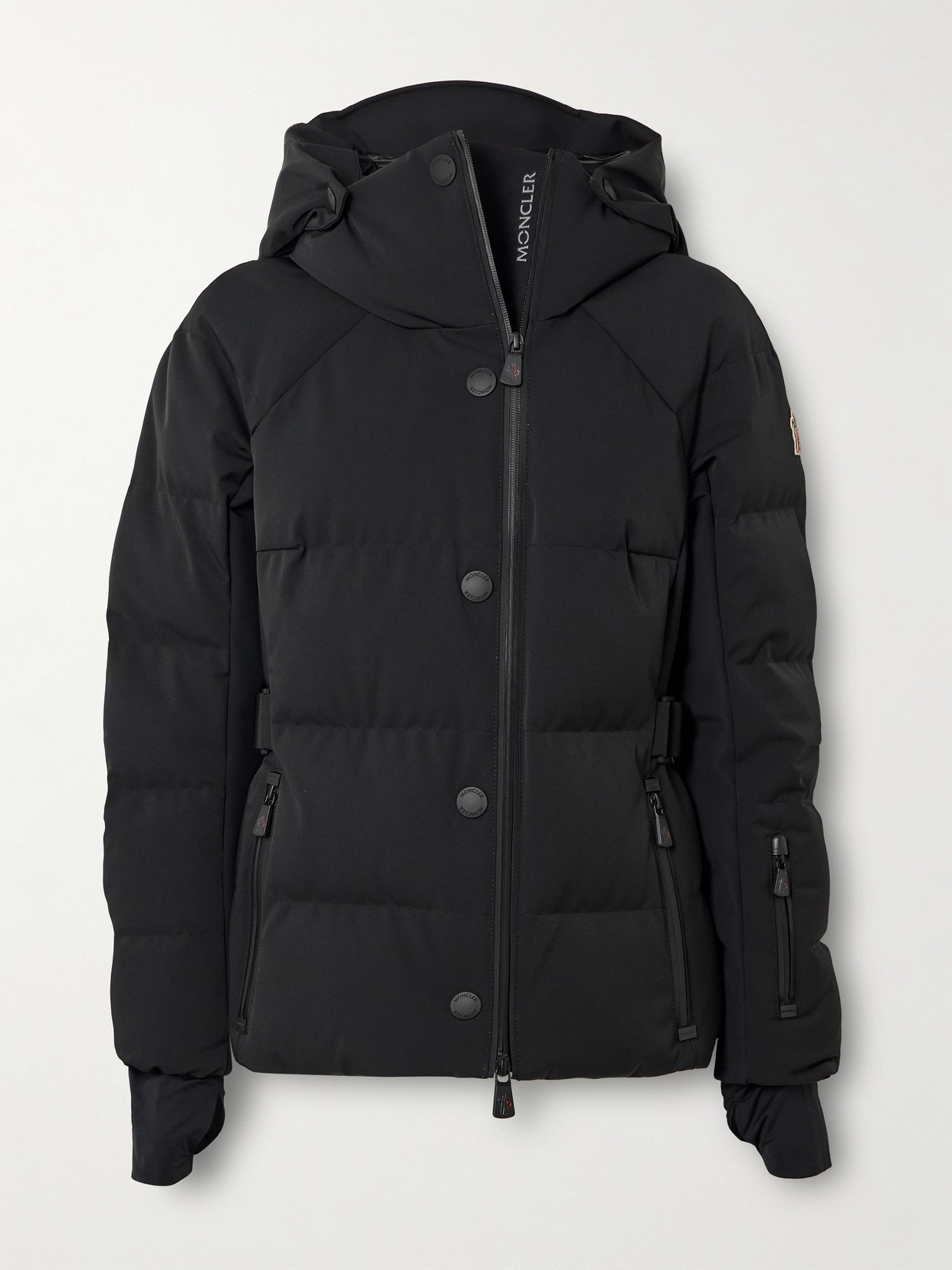 Enriched with Moncler Grenoble's technical expertise, this 'Guyane' hooded ski jacket is cut from two-layer stretch-shell that's durable, windproof and water-resistant. It's quilted to retain heat, padded with insulating down and has a powder skirt and wrist gaiters to lock out chill. Water-resistant fastenings and a dedicated ski pass pocket make it perfect for life on the slopes.