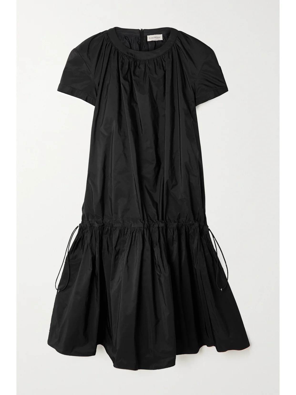 Moncler's mini dress has a dropped skirt that's flatteringly cinched at the waist - use the toggle fastenings to adjust the shape. Cut from swishy black taffeta, it has a T-shirt style bodice that's subtly gathered. Style it with sneakers or sandals.