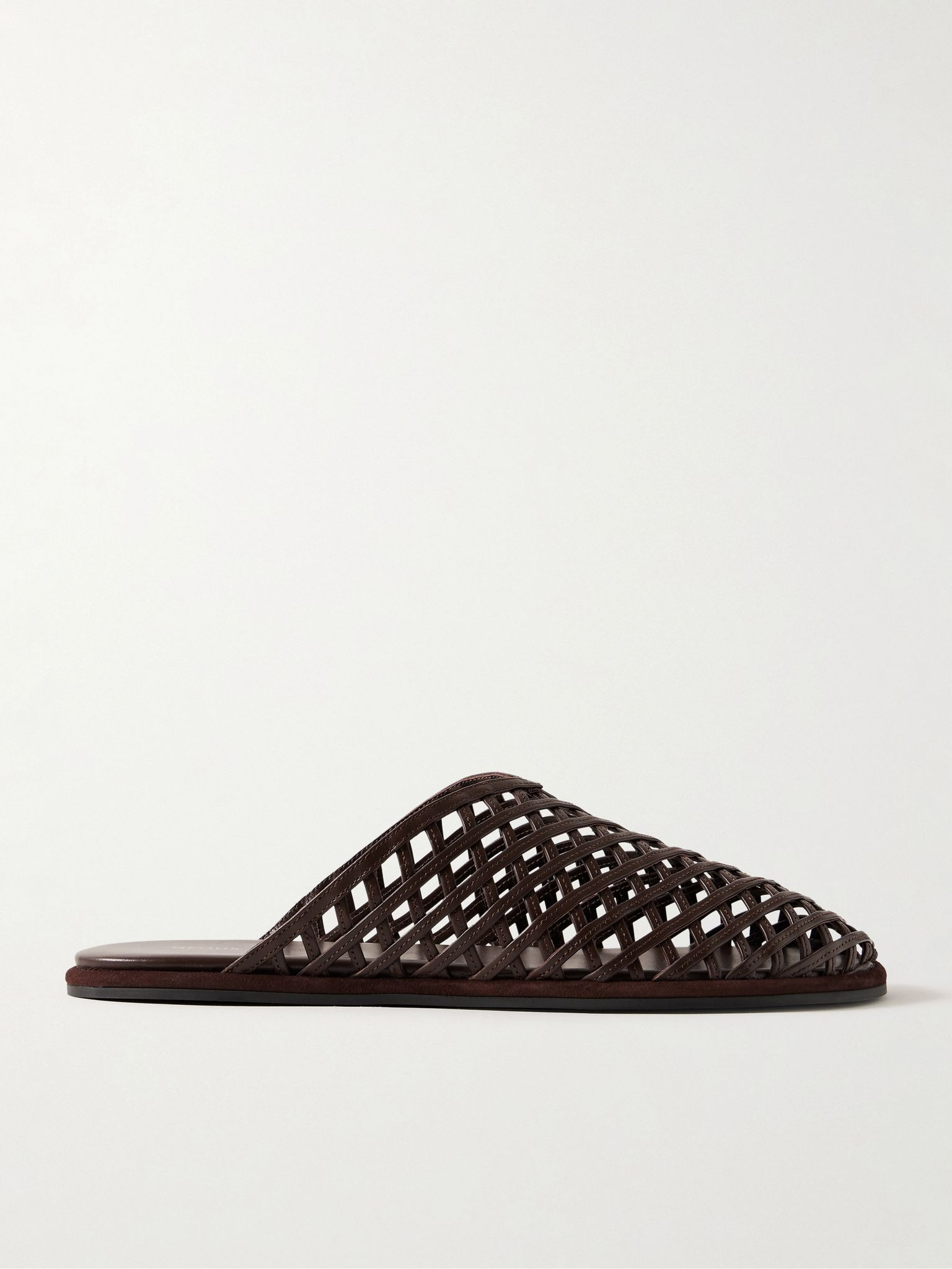 NEOUS' 'Atik' slippers have been handcrafted in Italy from slim strips of leather - they're stitched atop each other, creating a cool woven look. The insoles are lightly padded, so you can just imagine how comfy they feel. Size & Fit - Fits true to size, take your normal size - Italian sizing Details & Care - Dark-brown leather (Calf) - Slip on