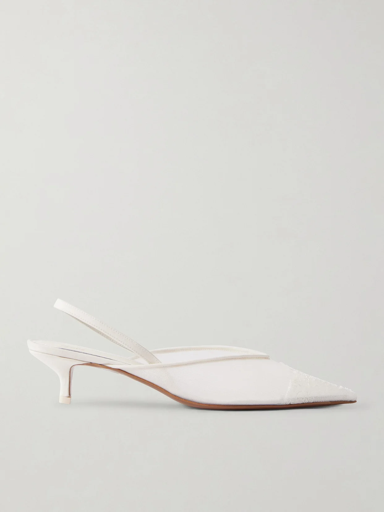 Irena Satin And Lace-trimmed Mesh Slingback Pumps