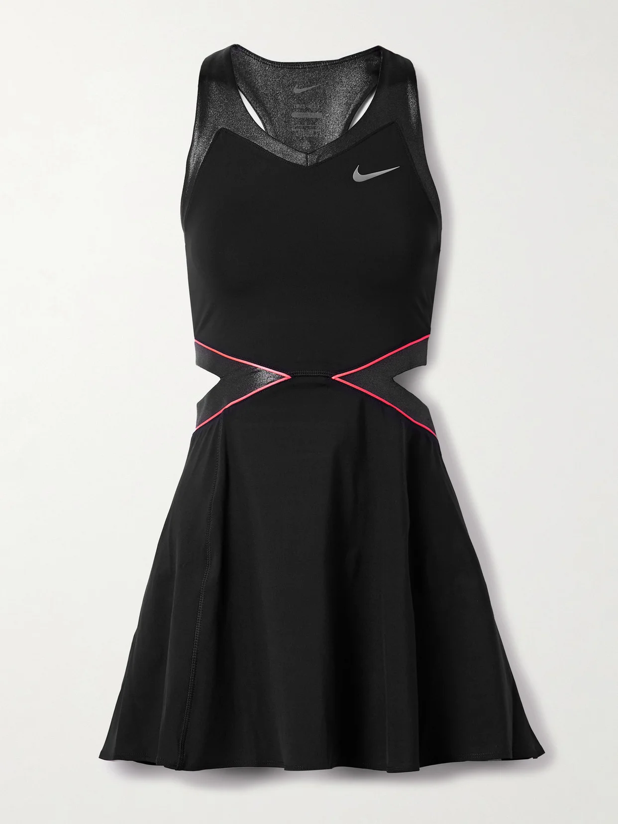 Nikecourt Slam Cutout Metallic Dri-fit And Mesh Tennis Dress
