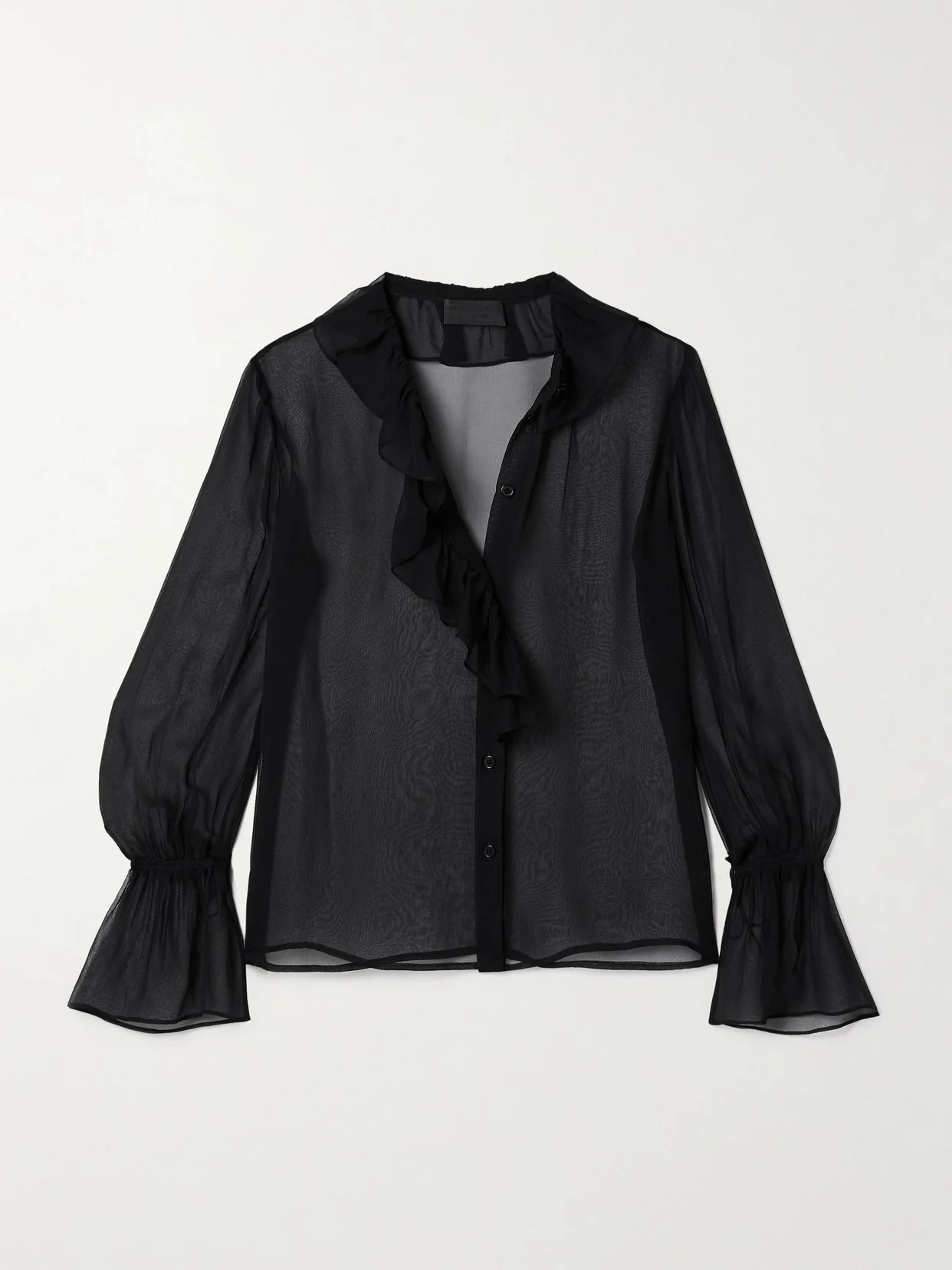 Nili Lotan's 'Cecily' blouse exudes romance. Perfect for your next date night, it's made from sheer silk-chiffon and has flouncy ruffled trims and blouson sleeves with fluted cuffs. Style it tucked into leather pants.
