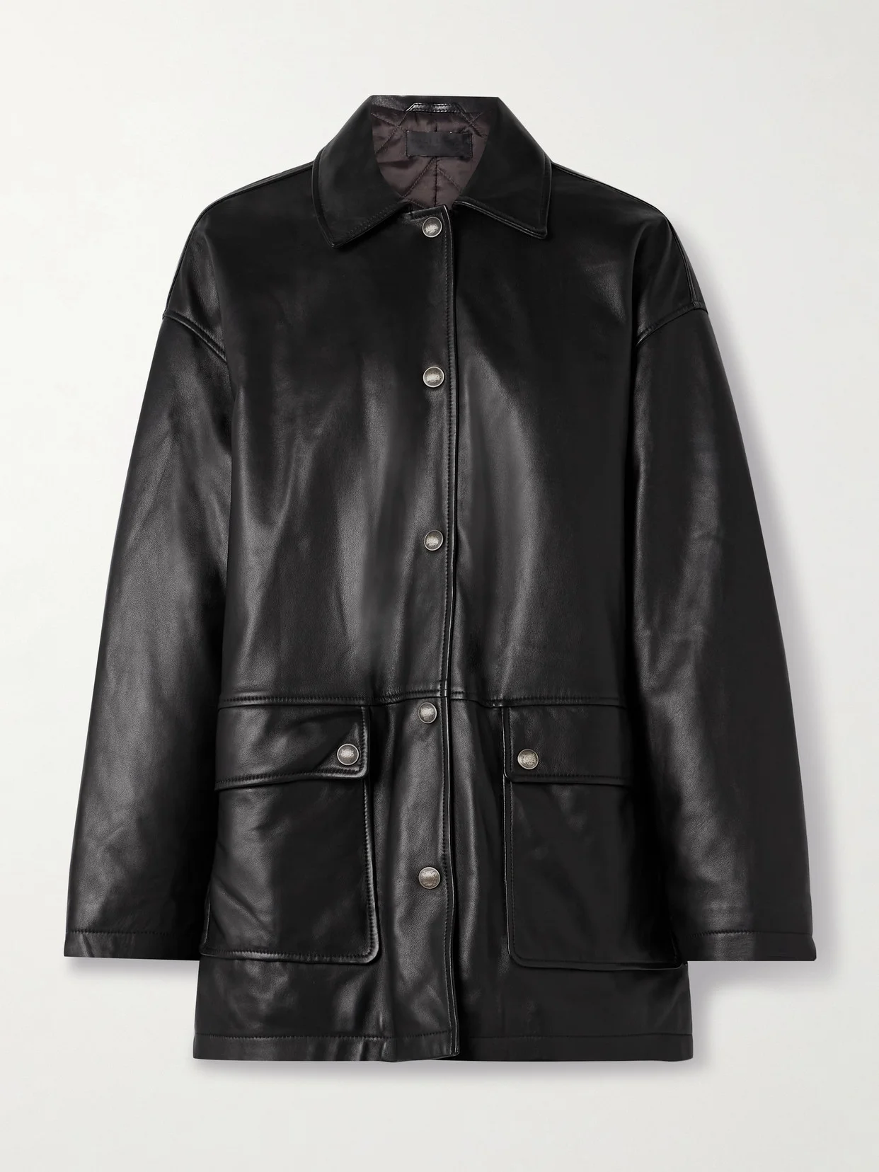 Nili Lotan knows the importance of quality outerwear, constructing this 'Cordel' coat from leather with an incredibly soft, supple handle. It's designed for an oversized fit with dropped shoulder seams and sizable flap pockets. The quilted satin-twill lining ensures comfortable layering.